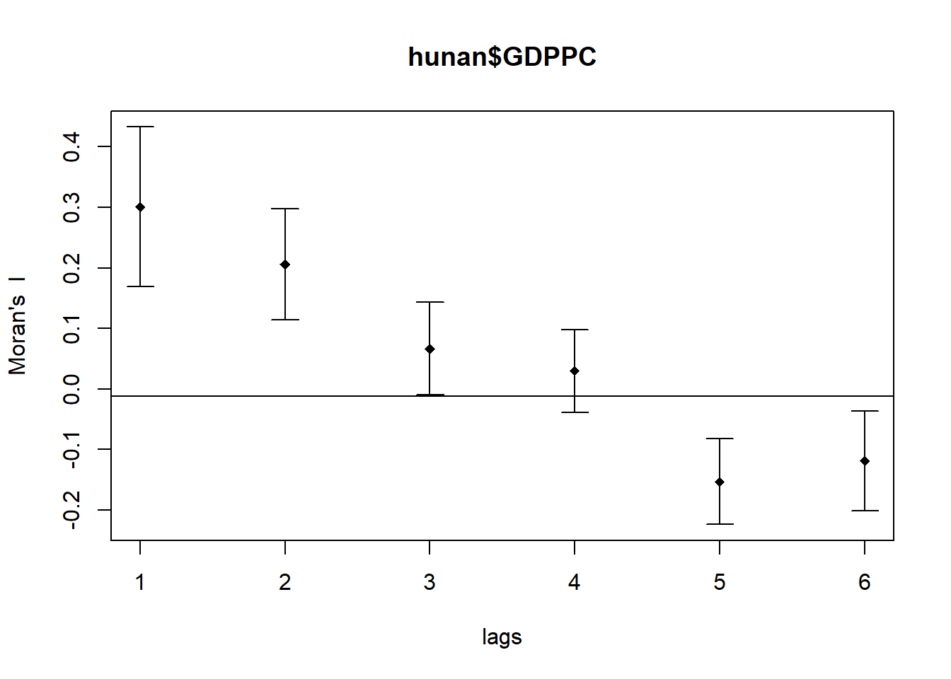 The summary report above shows that there are 88 area units in Hunan. The most connected area unit has 11 neighbours. There are two area units with only one neighbours.