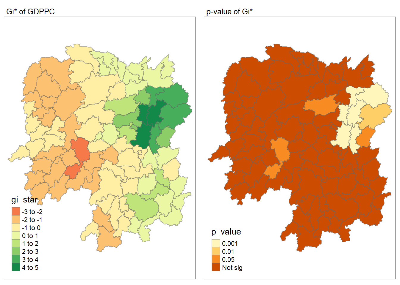 tm_layout(main.title = "p-value of Gi*",